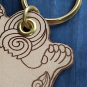オリジナルデザインのチベタンシーサーがレーザー彫刻されたキーリングです。革の表面に描かれたシーサーは、力強さと自由を象徴し、毎日の持ち物に個性をプラスします。使うたびに手に馴染む革の質感をお楽しみいただけます。